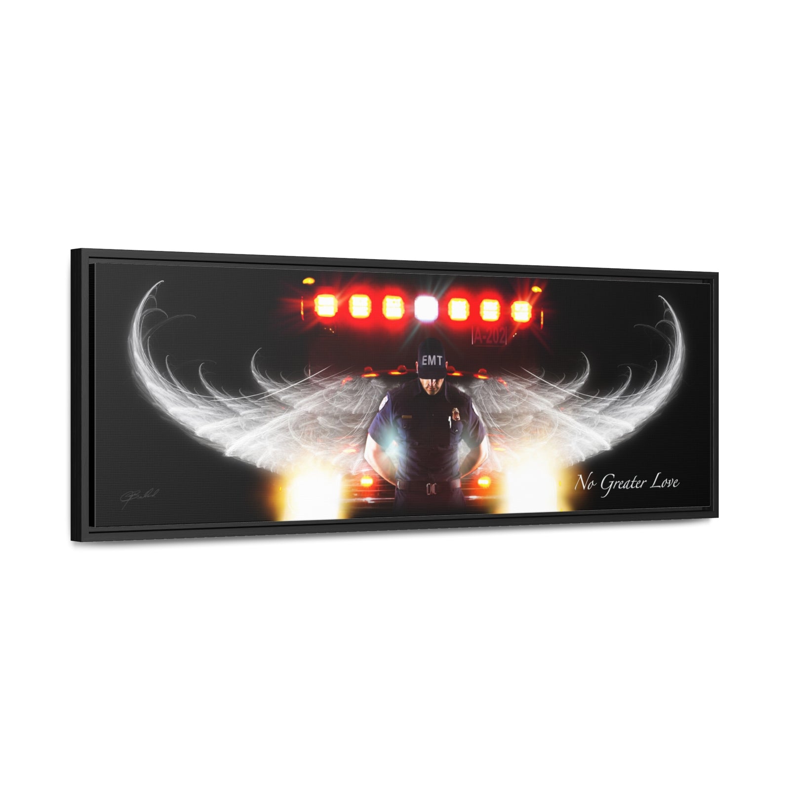 Your favorite police artwork and gifts from No Greater Love Art now in wrapped canvases that look great on any wall or can even be framed in a frame of your choice. make your home or office stand out and show off your support for those who are EMS, EMTs, or other first responders.
